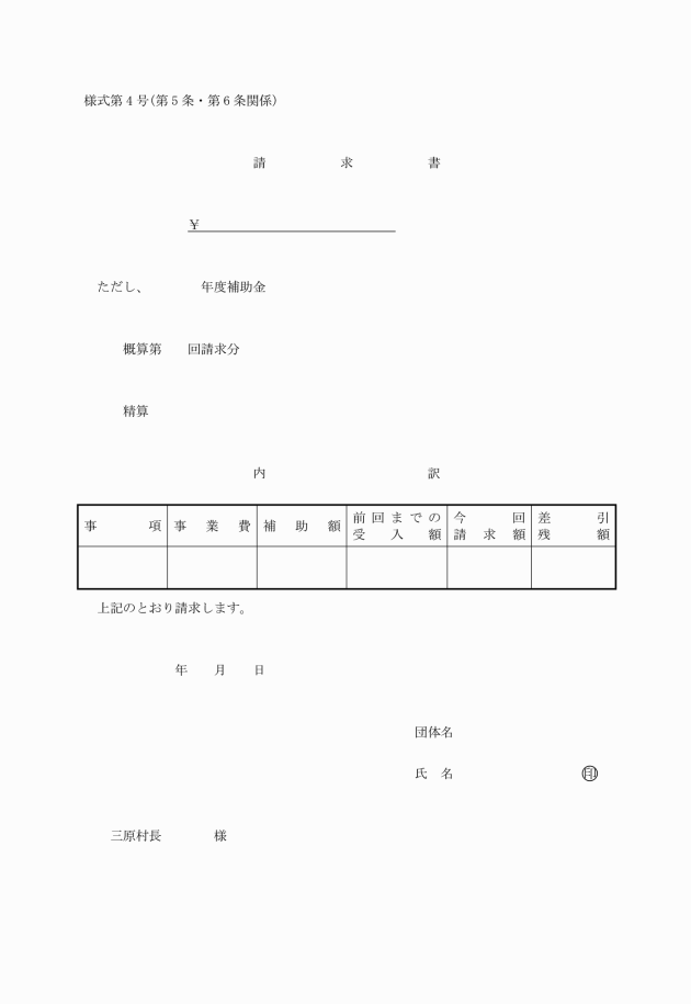 第5条 村長は、必要があると認めるときは、補助金の概算払をすることができる。