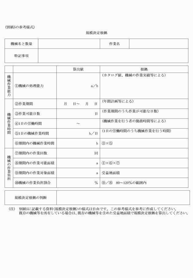 (ア) 整備する機械等の規模決定根拠に当たっては、客観的な資料により確認するものとする。ただし、別表「規模決定根拠の算定基準」を満たす計画の場合は、この限りでない。